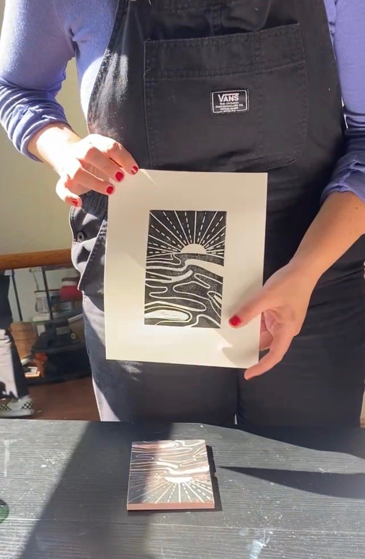 We will be designing, carving and printing on paper! All are welcome to bring any fabric items they’d like to print on as well!