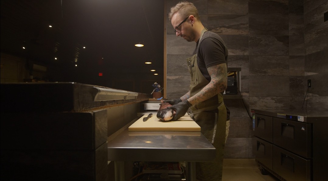 Live sheepshead from Oceanside Harbor is ike-jime processed and dry-aged before becoming a refined tartare accented with raspberry ponzu and marigold. The dish reflects Chef William Eick’s precision and Oceanside’s deep connection to local seafood.