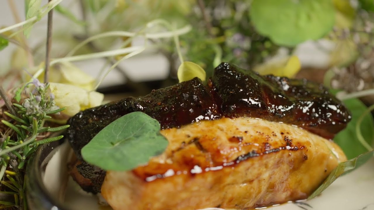 Inspired by the Oceanside Museum of Art’s Future Rituals exhibition, this dish pairs smoked pork rib with local wahoo shaped into a T-bone form. A fermented fennel “souherb” made from foraged coastal herbs ties the elements together, creating a reflection on balance, ecology, and Oceanside’s natural landscape.