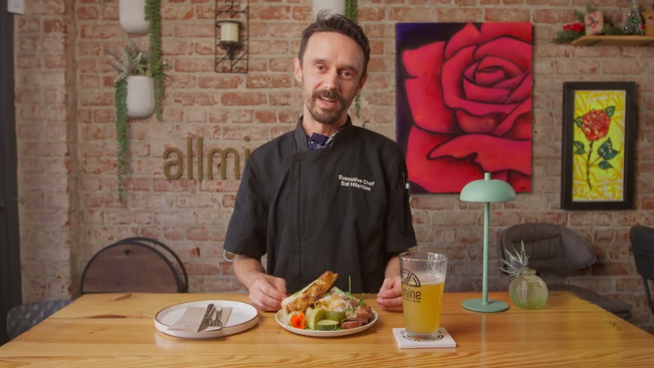 House-roasted porchetta is paired with mustard, pickles, and fresh focaccia, all crafted in-house using ingredients from local partners like D’Acquisto Farm and Thompson Heritage Ranch. The dish reflects allmine’s commitment to regional sourcing and Oceanside’s community-driven food culture.